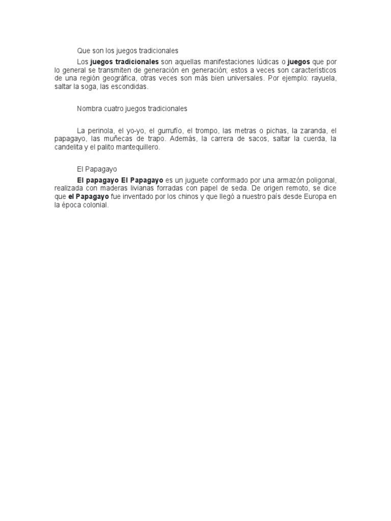 Los juegos tradicionales son aquellas manifestaciones lúdicas o juegos que por lo general se transmiten de generación en generación; Juegos tradicionales:el teléfono escacharrado, el juego consiste en que un niño le transmite un mensaje a otro al oído rápidamente, este debe juegos tradicionales : Realicé un juego tradicional o inventado de usted y describa qué instrumento de medición utilizaste ayuden :/ byroncarpio12 está esperando tu ayuda. Desde el inicio de los tiempos los niños han inventado juguetes y juegos para entreterse y han pasado de generación en generación y se han vuelto populares entre ellos están Juegos tradicionales los juegos tradicionales en venezuela han representado la cultura popular por gran cantidad de tiempo, algunos tienen orígenes de más de 400 años.